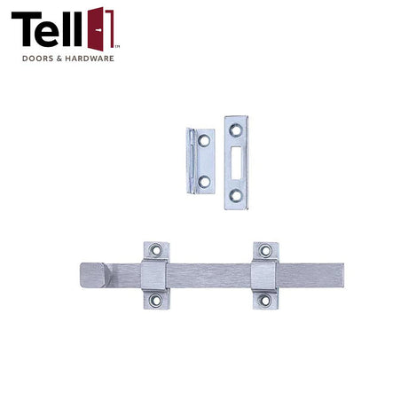 TELL DT100017 Door Surface Bolt - Solid Brass Material - 8" - Satin Chrome (US26D)